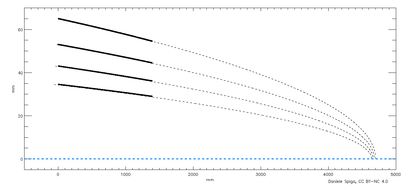 Il basso angolo di incidenza fa sì che lo specchio venga visto dalla sorgente quasi di profilo, quindi l’area di raccolta del singolo specchio è molto limitata perché solo un piccolo numero di raggi incontra lo specchio per essere focalizzato; per ovviare a tale problema, occorre “annidare” molti specchi uno dentro l’altro a “matrioska”, in modo da sfruttare in pieno l’apertura dell’ottica (Figura 4); ma questo comporta che gli specchi debbano essere sottili e leggeri per aumentare l’area di raccolta senza eccedere in massa: ricordiamoci infatti che questi telescopi vanno lanciati nello spazio.